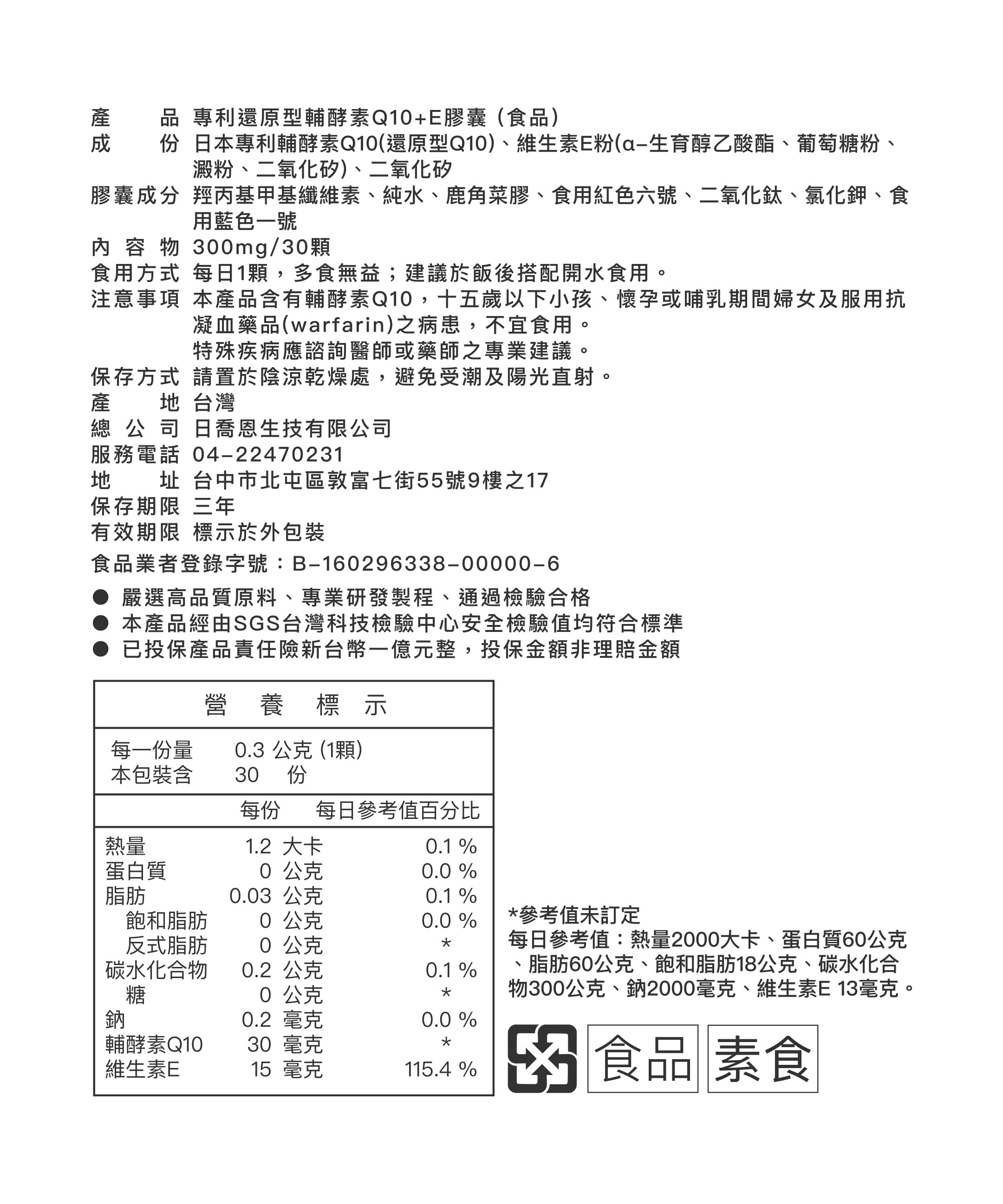 專利還原型輔酵素Q10+E膠囊 買二送一